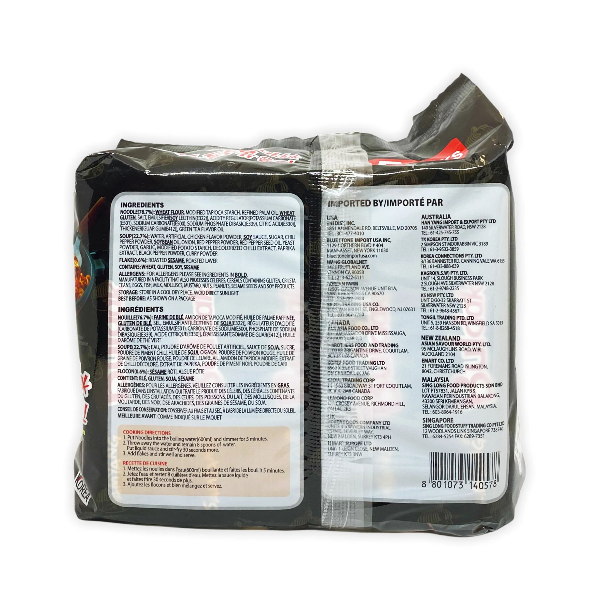 Nouilles instantanées coréennes sautées, certifiées halal, au goût intense de poulet épicé. Saveur relevée et puissante, à déguster sans bouillon.
